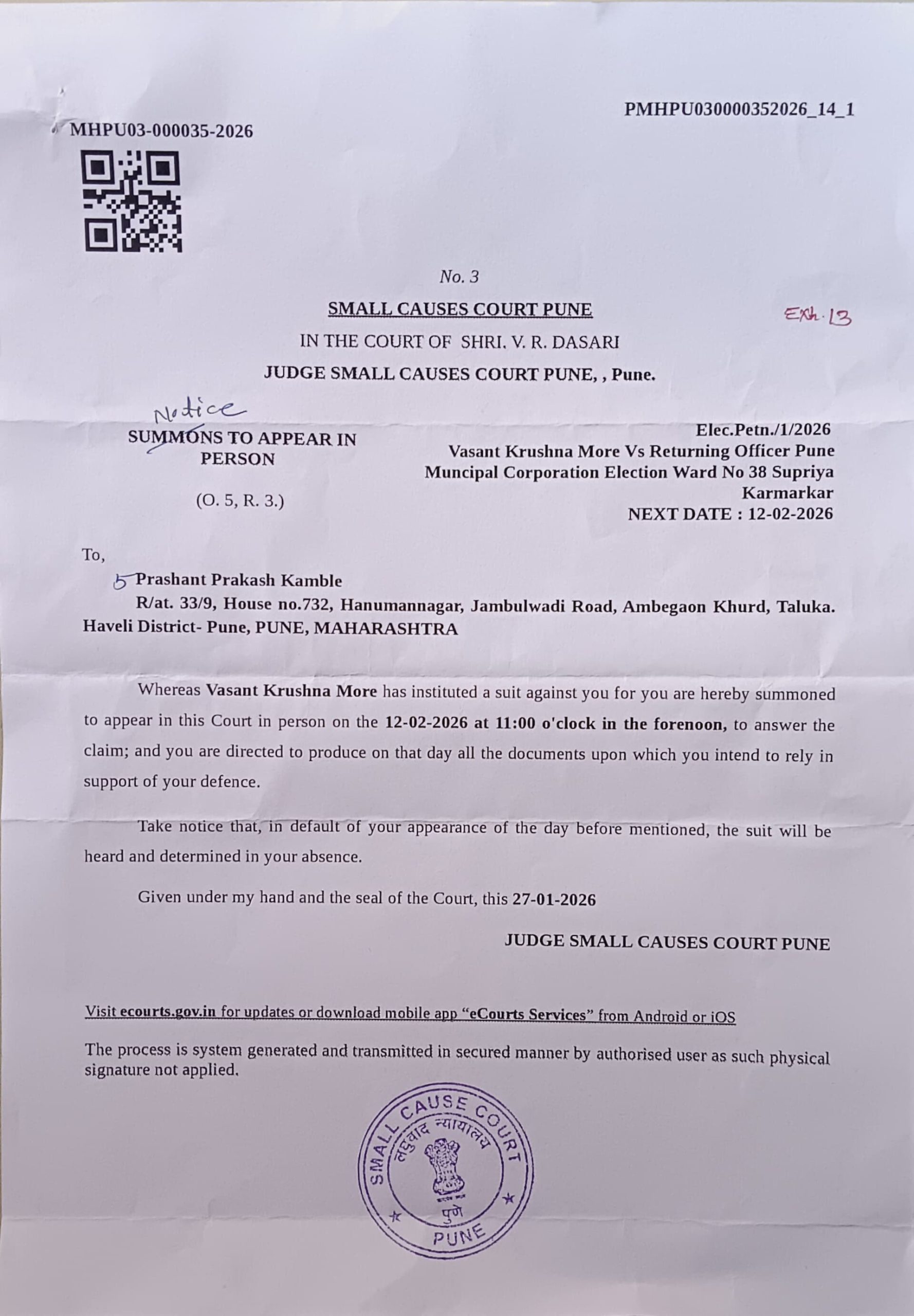प्रभाग क्रमांक ३८ बालाजी नगर–आंबेगाव कात्रज येथील ई गटाच्या निवडणुकीत ईव्हीएमच्या माध्यमातून हुकूमशाहीचा संशय न्यायालयीन लढाईला वेग..!! पुणे प्रतिनिधी -:पुणे महानगरपालिकेच्या प्रभाग क्रमांक