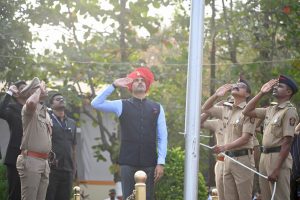 नंदुरबार-: भारताच्या ७७ व्या प्रजासत्ताक दिनानिमित्त गृहराज्य मंत्री योगेश कदम यांच्या हस्ते पोलीस मुख्यालय, नवीन कवायत मैदान, नंदुरबार येथे भव्य व शिस्तबद्ध ध्वजारोहण सोहळा संपन्न झाला. ध्वजारोहणानंतर पोलीस दलाच्या आणि शाळेतील विद्यार्थ्यांच्या तुकड्यांनी आकर्षक व शिस्तबद्ध संचलन सादर करत देशभक्ती, कर्तव्यनिष्ठा आणि शौर्याचे प्रभावी दर्शन घडवले. यावेळी नंदुरबार जिल्ह्यातील विविध शाळेतील विद्यार्थ्यांनी देशभक्तीपर गीत सादर केले. तसेच बालविवाह प्रतिबंधक शपथ उपस्थित सर्वांना देण्यात आली. राष्ट्रप्रेम, शिस्त आणि कर्तव्यभावनेचा जागर करणारा हा प्रजासत्ताक दिन अत्यंत गौरवशाली वातावरणात साजरा झाला.
